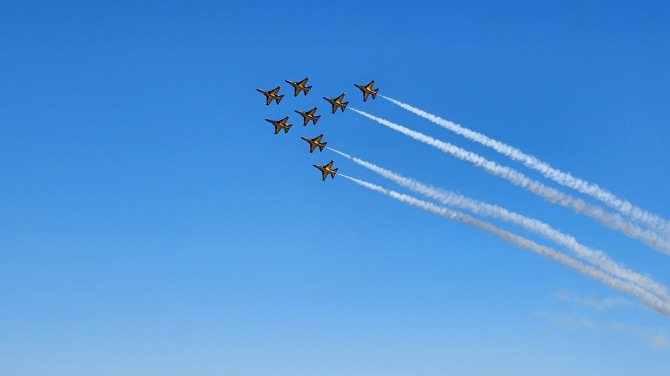 이미지 확대보기16일 공항 인근 주민들에 따르면 지난 2009년부터 2년마다 열리는 행사는 개막을 앞두고 서울공항 상공에서 매일 오전부터 오후까지 전투기가 굉음 소리를 내며 선회 비행하고 있다.