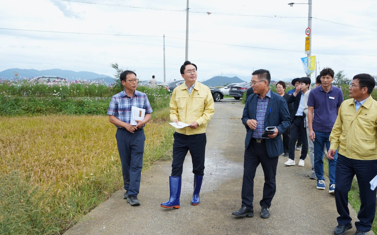 윤병태 시장은 10월 15일 반남면 덕산리 일대 피해 논을 방문해 현황을 점검하고 지역 농협 관계자들과 함께 병해 확산 원인을 살폈다.