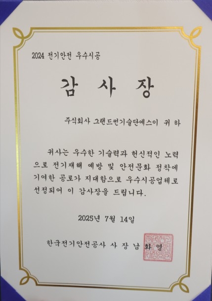 특히, 시공 단계부터 검사 및 유지관리까지 전 과정에서 안전을 최우선으로 하는 시스템을 도입하여, 전기화재 예방과 근로자 안전 확보에 크게 기여한 점이 높은 평가를 받았다.