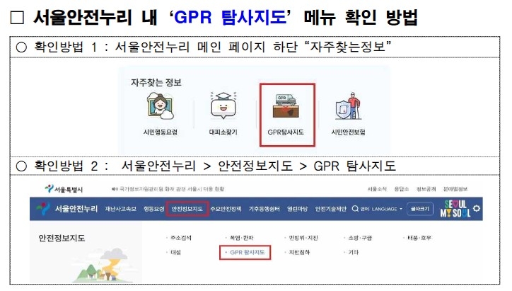 11년간 실시한 GPR 탐사 조치 결과 ‘서울안전누리’ 내 ‘GPR 탐사지도’에 투명 공개