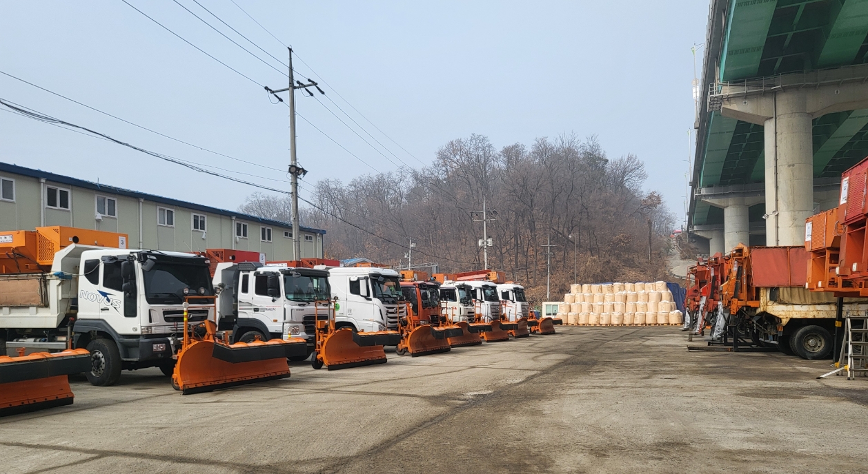 올해는 노후 제설장비 44대를 교체하고 제설 차량 6대를 추가 확보해 총 515대(임대 124대 포함)의 제설장비를 운영하며, 친환경 제설제 1만9,360톤, 액상 제설제 3,180톤, 모래 600㎥, 제설함 1,047개 등 제설 자재를 비축해 전년도 사용량의 약 90%를 미리 확보했다.