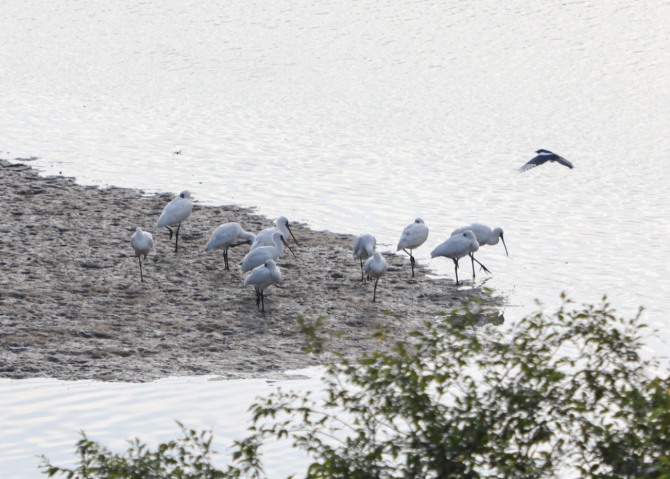 지난 20일 멸종위기야생생물 I급 저어새 10여 마리가 안산갈대습지 내 갯벌에서 먹이 활동을 하고 있다. 사진=안산환경재단이미지 확대보기