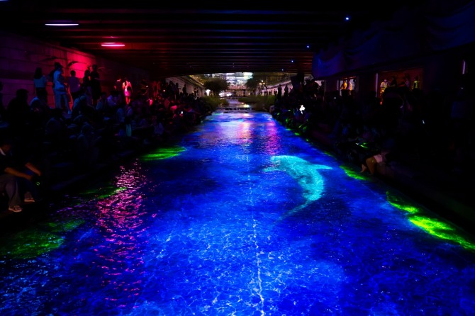 이미지 확대보기‘청계 소울 오션(Cheonggye Soul Ocean)’은 청계천 광교 아래에서 펼쳐지는 야간 미디어아트 전시로, 청계천 물길을 활용한 수면 미디어아트 전시를 비롯해 인터렉티브 미디어아트와 미디어아트 포토존을 선보이며, 서울 도심을 대표하는 야간 관광명소로 자리매김하고 있다.