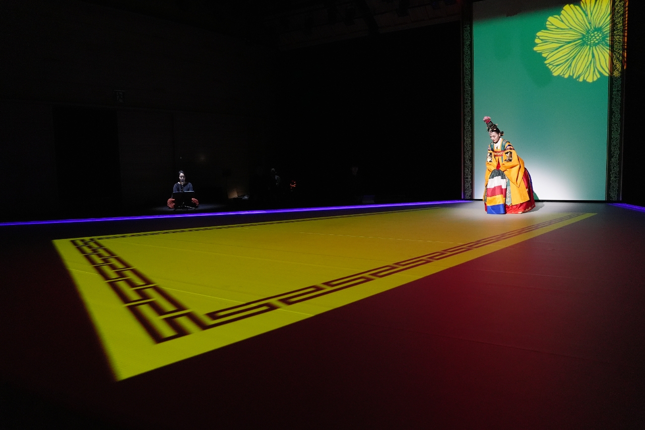‘의식의 문’ : 이승과 저승, 기억과 현실을 경계하는 문, 한 걸음 내딛는 순간, 빛이 몸을 따라 번지고, 잊힌 이름들이 바람처럼 되살아난다. 빛의 경계는 집중을 불어오며, 신체 움직임과 리듬이 내적 의식의 심미적 수사로 작용한다. 경험의 질감 위에 ‘춘앵전’의 봄빛이 투영되고, 검무는 경험을 미학적으로 끌어 올린다. 그리움은 추억의 파편을 이어 붙이며, 무대는 사유와 감각을 조용히 기원의 제단에 바친다. 문은 그렇게, 조용히 열리며 기억 속 세계로 이끈다.