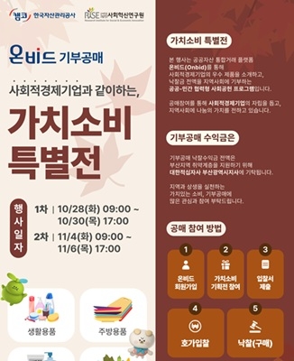 사회적경제기업 생산품 및 명사 기증품으로 온비드 기부공매 진행