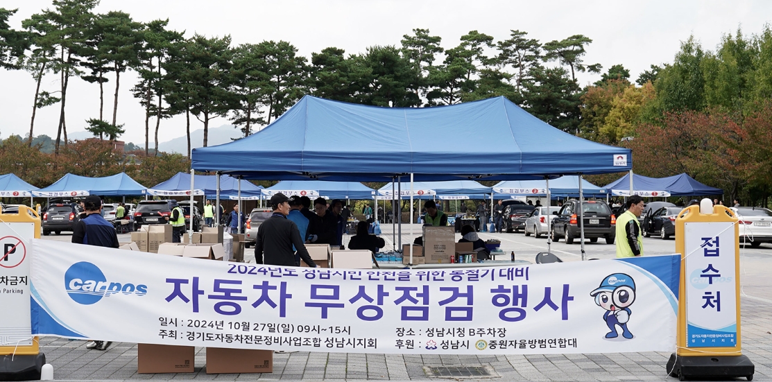 이미지 확대보기이번 행사는 성남시가 후원하고 경기도자동차전문정비사업조합(카포스) 성남시지회가 주최하며, 자동차 고장으로 인한 안전사고를 예방하고 본격적인 겨울철을 앞두고 시민들의 안전 운행을 돕기 위해 마련된 정기 서비스 행사다.