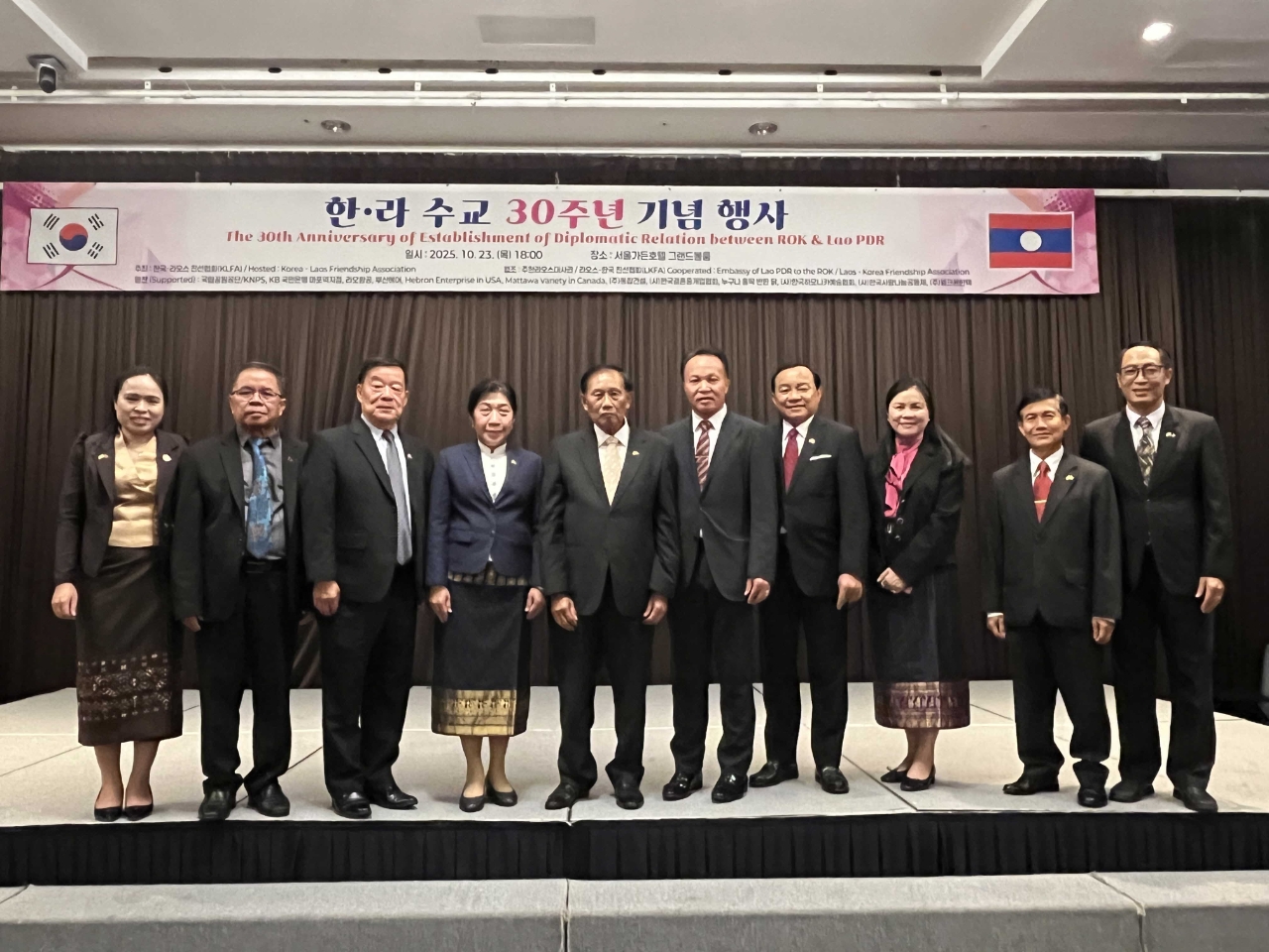 10월 23일 저녁 6시, 한국-라오스 수교 30주년(재수교일 1995년 10월 25일) 기념행사가 한·라오스친선협회(회장 오명환) 주최, 주한 라오스 대사관 협력, 장석용(한국예술평론가협의회 회장)의 사회로 서울 마포가든호텔 그랜드볼룸에서 성대하게 거행되었다. 수교 행사에는 LKFA 캄수와이 께오달라봉 회장과 정부 4개 부처 국장을 포함한 임원·기업인 등 총 16명, 라오스 대사관 전 직원·유학생회 및 KLFA 임원, 회원, 귀빈 등 150여 명이 참석 의미를 더했다.