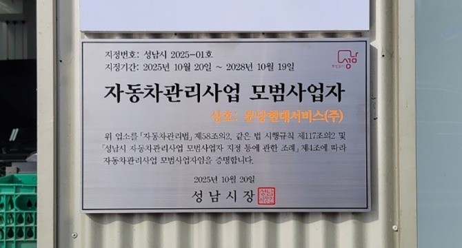 이미지 확대보기이번 지정은 성남시가 처음으로 시행한 사업으로, 시민이 안심하고 차량을 맡길 수 있는 정비 환경을 조성하기 위해 추진됐다.