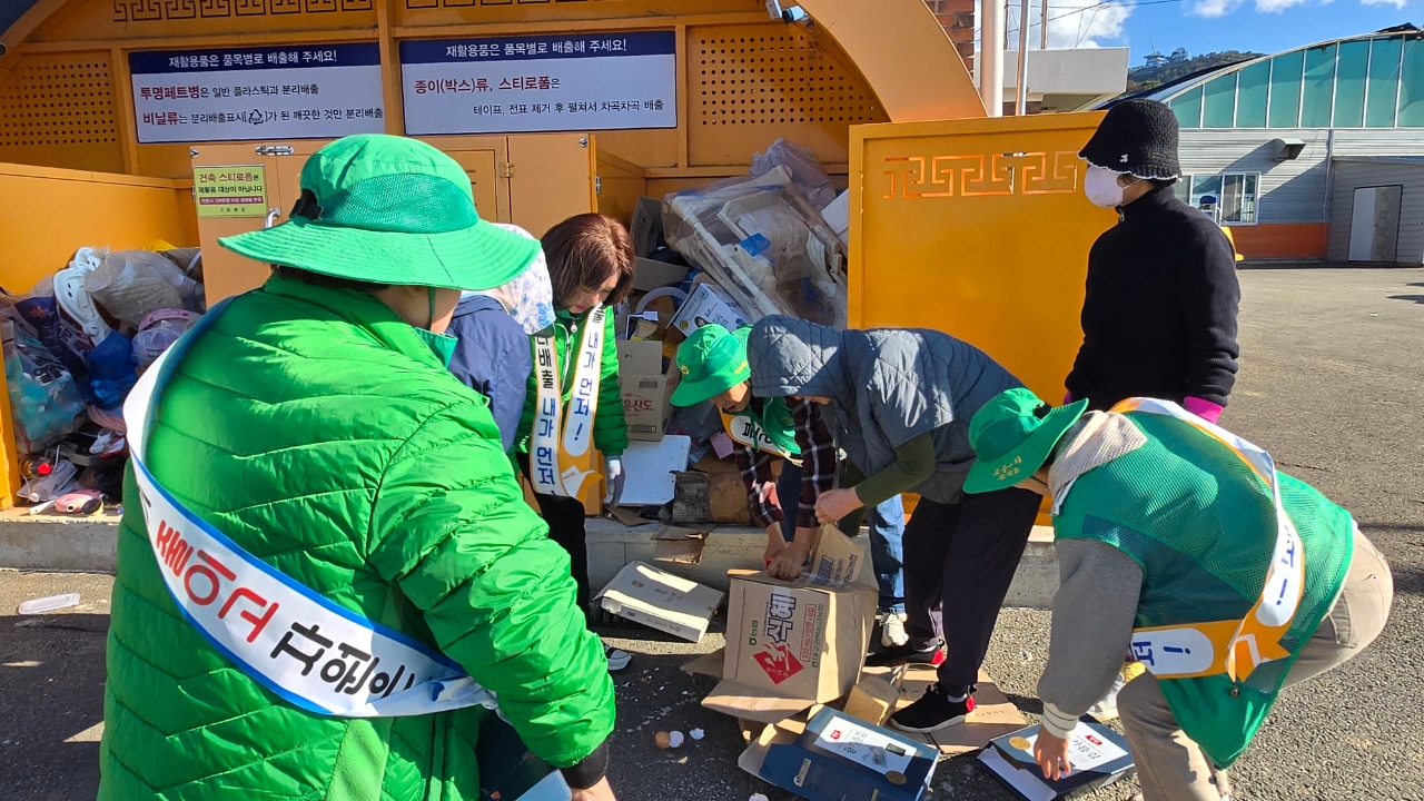 이날 새마을 부녀회 나인숙 회장을 비롯해 회원 전원은 마을별로 생활쓰레기 배출 장소를 직접 방문해 분리배출 상태를 세밀하게 확인하고, 비정상 배출 행위를 살피며 문제점과 개선 방안을 모색하는 시간도 가졌다.