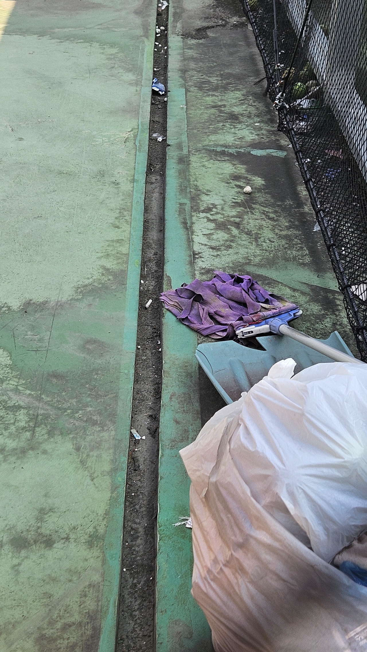 바닥도 가래침 등으로 초록색이 시커멓게 변해
