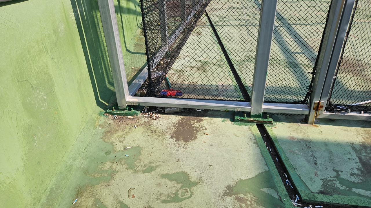그러나 흡연실보다 부스 바깥에서 흡연으로 ‘금연’문구는 무색하게 흡연자들이 피우고 난 꽁초들을 바닥에 버리고 침을 뱉기도 해 관리가 전혀 돼 있지 않았다. 심지어 운동시설인 테니스장에도 담배꽁초가 눈에 띄기도 했다.