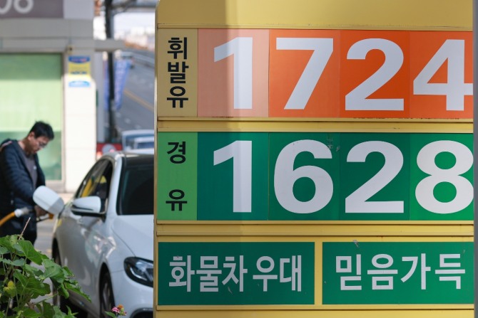 11월 첫째 주간 평균가 휘발유 1685.6원, 경유 1568.2원