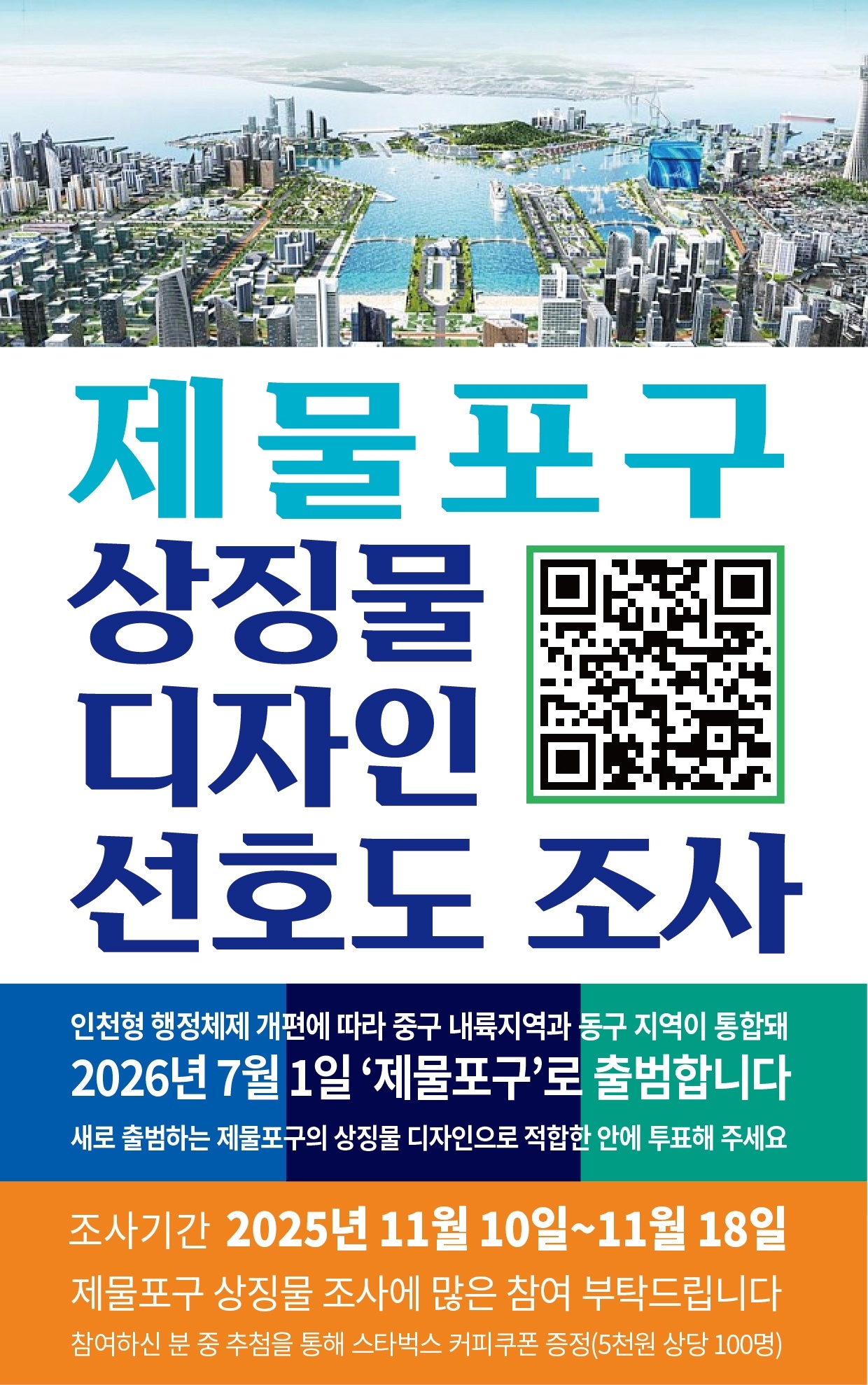 중·동구 관계자는 “제물포구 상징물은 주민의 일상 곳곳에서 구의 정체성을 나타내는 중요한 상징이자 지역의 얼굴이 될 것”이라며 “이번 조사에 많은 시민의 관심과 참여를 바란다”고 전했다.