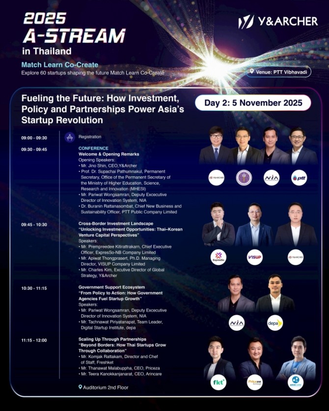 이번 A-STREAM 방콕의 주제는 “Fueling the Future: How Investment, Policy and Partnerships Power Asia’s Startup Revolution”으로, 투자·정책·파트너십을 통한 아시아 스타트업 혁신의 동력을 모색하는 데 초점을 맞췄다.