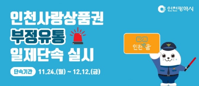 주현진 시 사회적경제과장은 “인천사랑상품권은 소상공인과 자영업자를 돕기 위한 제도로, 그 목적이 훼손되지 않도록 철저히 단속하겠다”며 “시민 여러분의 관심과 신고가 부정유통 근절에 큰 힘이 된다”고 강조했다.