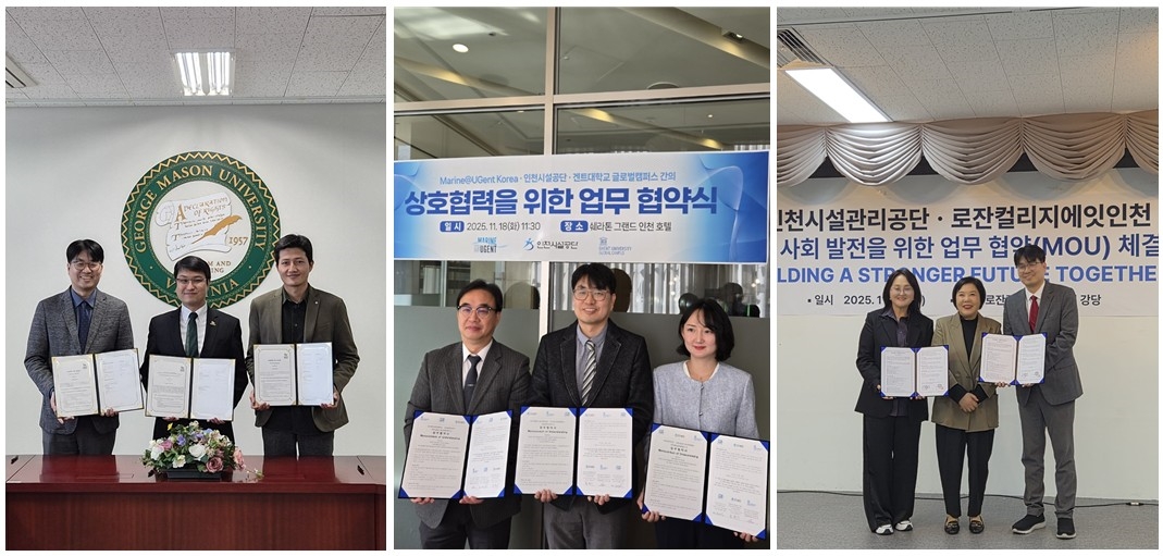 이미지 확대보기이는 글로벌 캠퍼스 내 한국 조지메이슨대학교, 겐트대학교, 로잔컬리지에잇인천과 협력체계를 구축해, 글로벌 네트워크 강화와 환경보존, 문화 교류 등 사회적 가치 실현이란 목표다.
