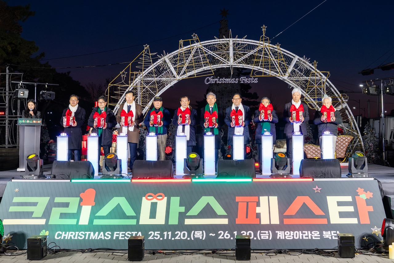 점등식은 계수중학교 댄스동아리 ‘텐션’의 활기찬 식전 공연으로 문을 열었다. 트리마을의 불빛이 일제히 켜지는 순간 시민들은 환호와 감동으로 하나가 됐으며, 축제 분위기는 절정에 달했다.