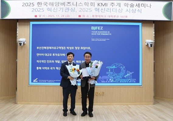 이미지 확대보기한국해양비즈니스학회는 매년 무역·물류·해양·비즈니스 분야에서 혁신적 성과를 낸 기관과 리더를 선정해 시상하고 있다. 올해‘혁신기관상’에는 부산진해경제자유구역청이 단독 선정되었으며, 이는 항만·물류·글로벌 비즈니스 분야에서 지역 성장과 국가 경쟁력 제고에 기여한 공로를 공식적으로 인정받은 결과다.