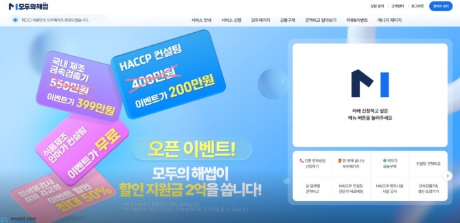 이미지 확대보기주식회사 모두코퍼레이션은 이번 리뉴얼 오픈을 기념해 오는 12월 31일까지 해썹인증 금액 지원 이벤트를 진행한다. 이벤트 기간 동안 HACCP 컨설팅, 금속검출기 장비, 미생물 검사 및 장비 검교정 등 인증 관련 주요 항목에 대해 비용 지원 혜택을 받을 수 있으며, 예산 2억 원 소진 시 조기 종료될 수 있다.