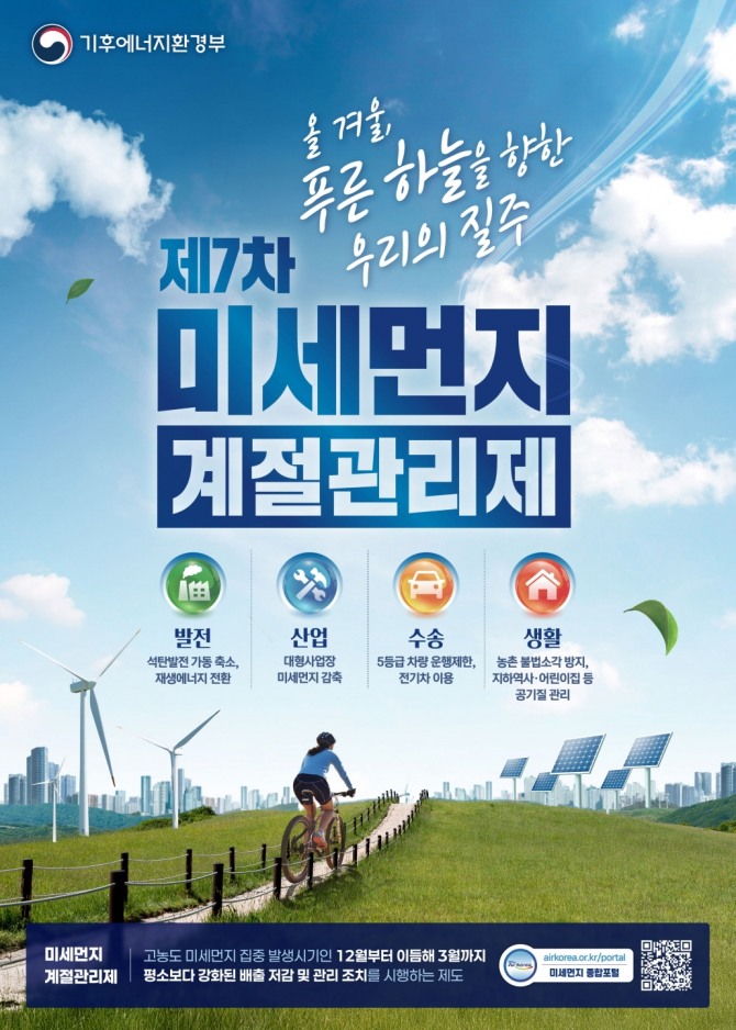 계절관리제 기간에 △배출가스 5등급 차량 운행 제한 △영농폐기물 불법소각 집중단속 △공회전 제한구역 내 공회전 단속 △공사장ㆍ사업장 비산먼지 집중관리 등 총 6개 분야 17개 이행과제를 중점적으로 추진해 배출원 단속을 강화할 예정이다.