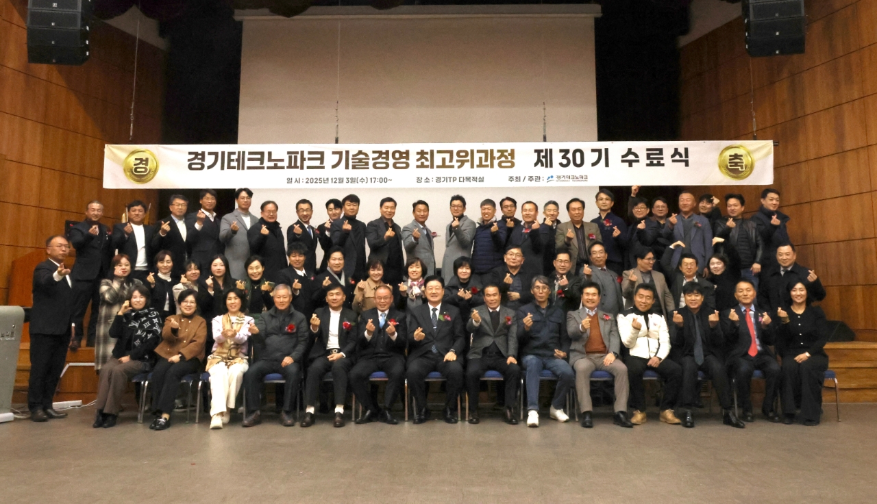 정진수 경기TP 원장은 “1년간의 과정을 성실히 마친 제30기 원우들께 축하와 감사의 마음을 전한다”며 “앞으로도 동문과의 협력을 강화하고, 기업이 필요로 하는 지원을 경기TP 애로상담센터를 통해 적극 제공하겠다”고 밝혔다.