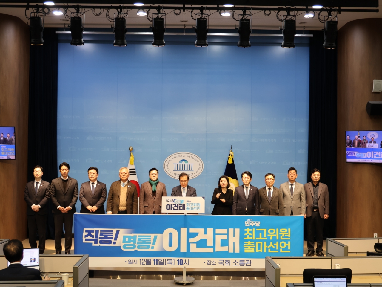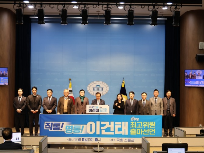 한편 이건태 의원의 출마선언 현장에는 박찬대 의원(전 원내대표), 한준호 의원(전 최고위원), 천준호 의원(전 이재명 당대표 비서실장) 이재강 의원(현 더민초 대표, 이재명 경기도부지사), 김태선 의원(전 이재명 당대표 수행실장)이 함께 했다.