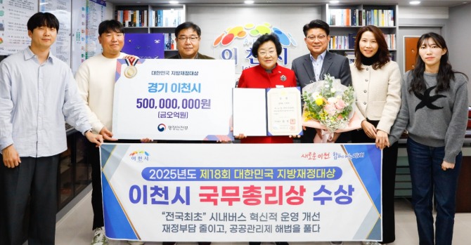 김경희 이천시장은 “이번 수상은 시민 생활과 직결된 정책을 중심으로 책임 있는 재정 운용을 추진해 온 결과”라며 “앞으로도 재정 효율성과 주민 편익을 함께 높일 수 있는 정책을 지속적으로 이어가겠다”고 밝혔다.