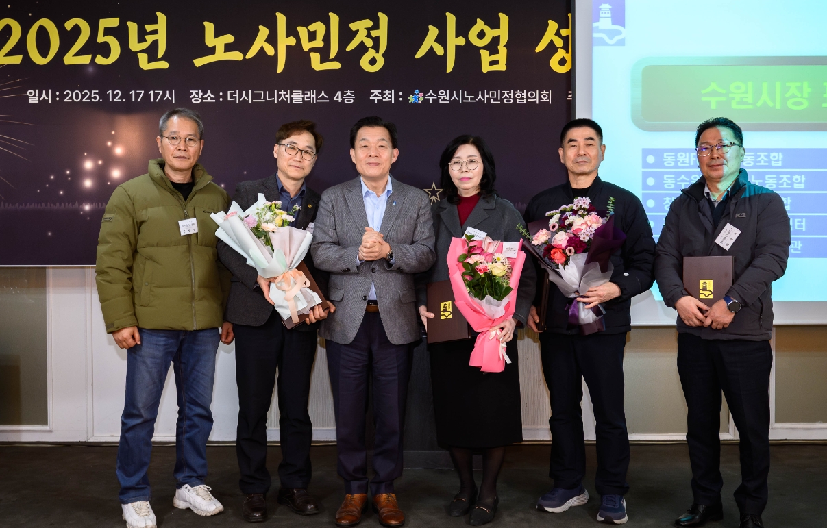이미지 확대보기이날 성과보고회는 이재준 수원시장을 비롯해 노사민정협의회 위원, 버스·택시·제조업 등 58개 노조 관계자들이 참석한 가운데, 협의회 성과보고와 유공자 표창, 성과 영상 상영 등이 진행됐다. 협력과 상생에 기여한 공로자 9명은 수원시장 표창과 시의회의장 표창을 각각 받았다.