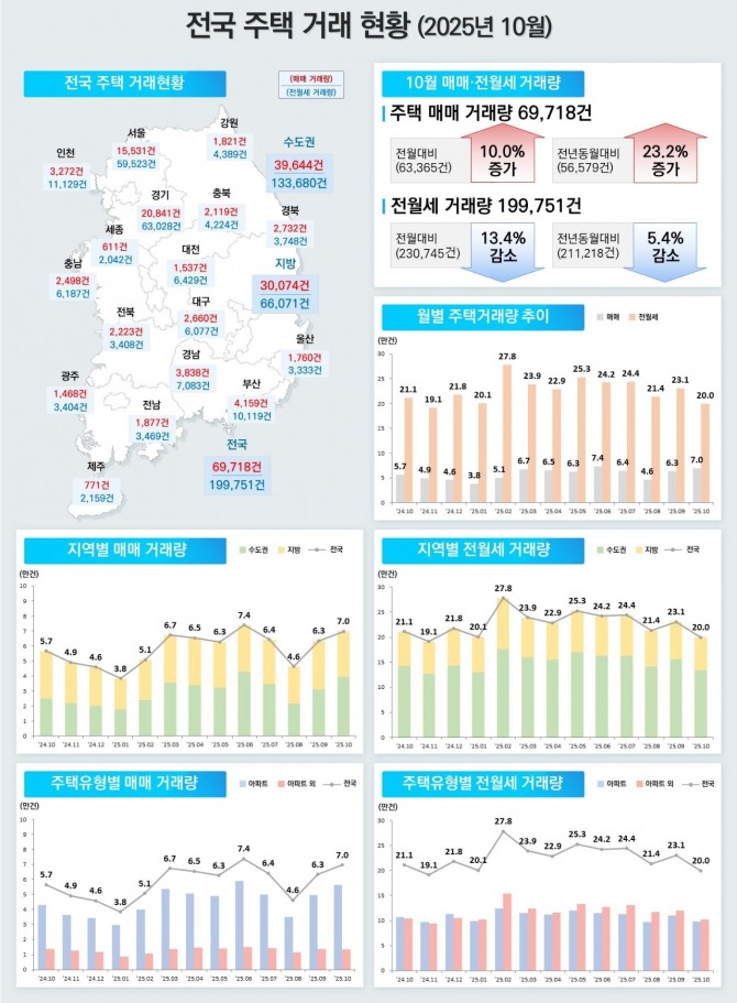 주택 전·월세 거래량 역시 9월 1만3,541건에서 10월 1만1,129건으로 17.8% 감소했다.