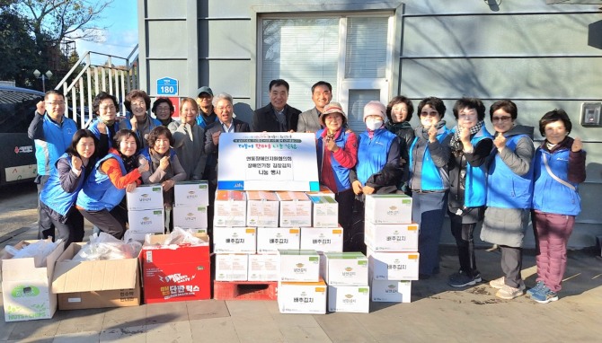 이미지 확대보기연동장애인지원협의회(회장 좌영순)는 19일 남현김치 2층에서 지역 장애인들을 위한 김장김치 나눔 행사를 진행했다.