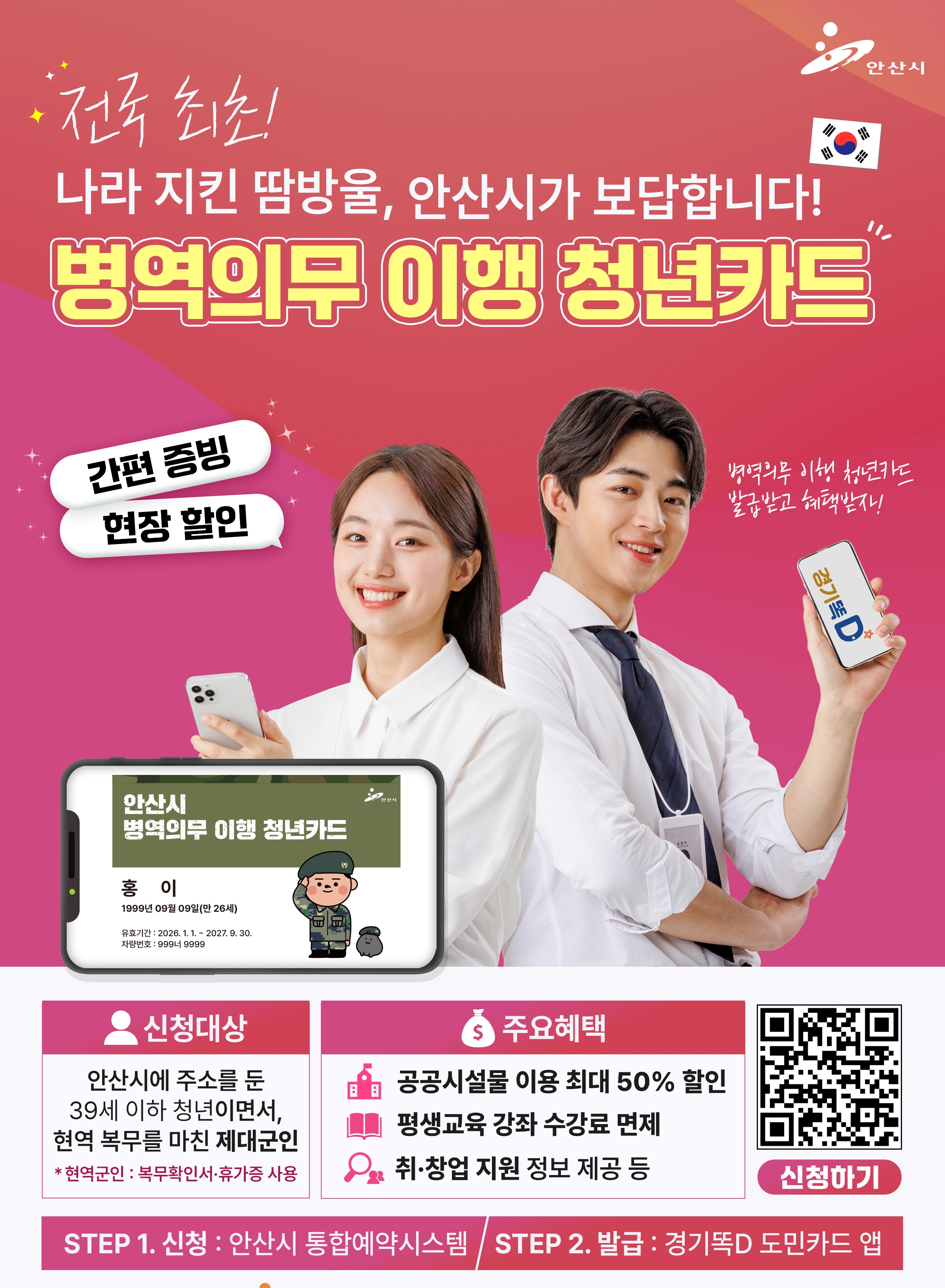 이민근 시장은 이번 사업과 관련해 “국가를 위해 헌신한 청년을 ‘사회적 자산’으로 존중하고 지원하는 것은 지방정부의 중요한 책무라고 생각한다”라며 “시는 전국 최초로 관련 조례를 제정한 데 이어, 서류 없는 간편 증빙 시스템을 도입함으로써 청년들이 행정의 신뢰를 체감하고 지역사회에 안정적으로 정착할 수 있도록 적극 지원하겠다”고 덧붙였다.