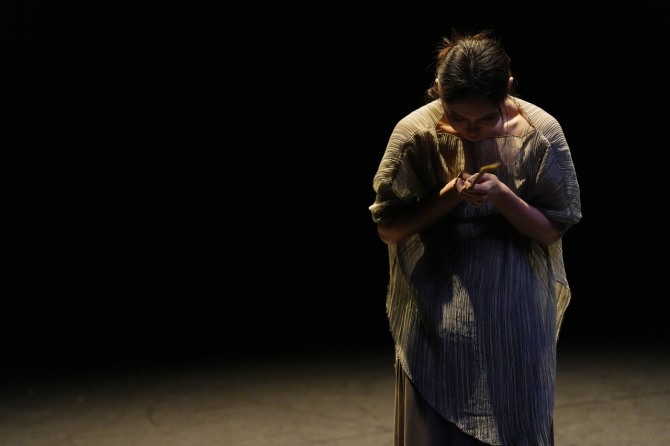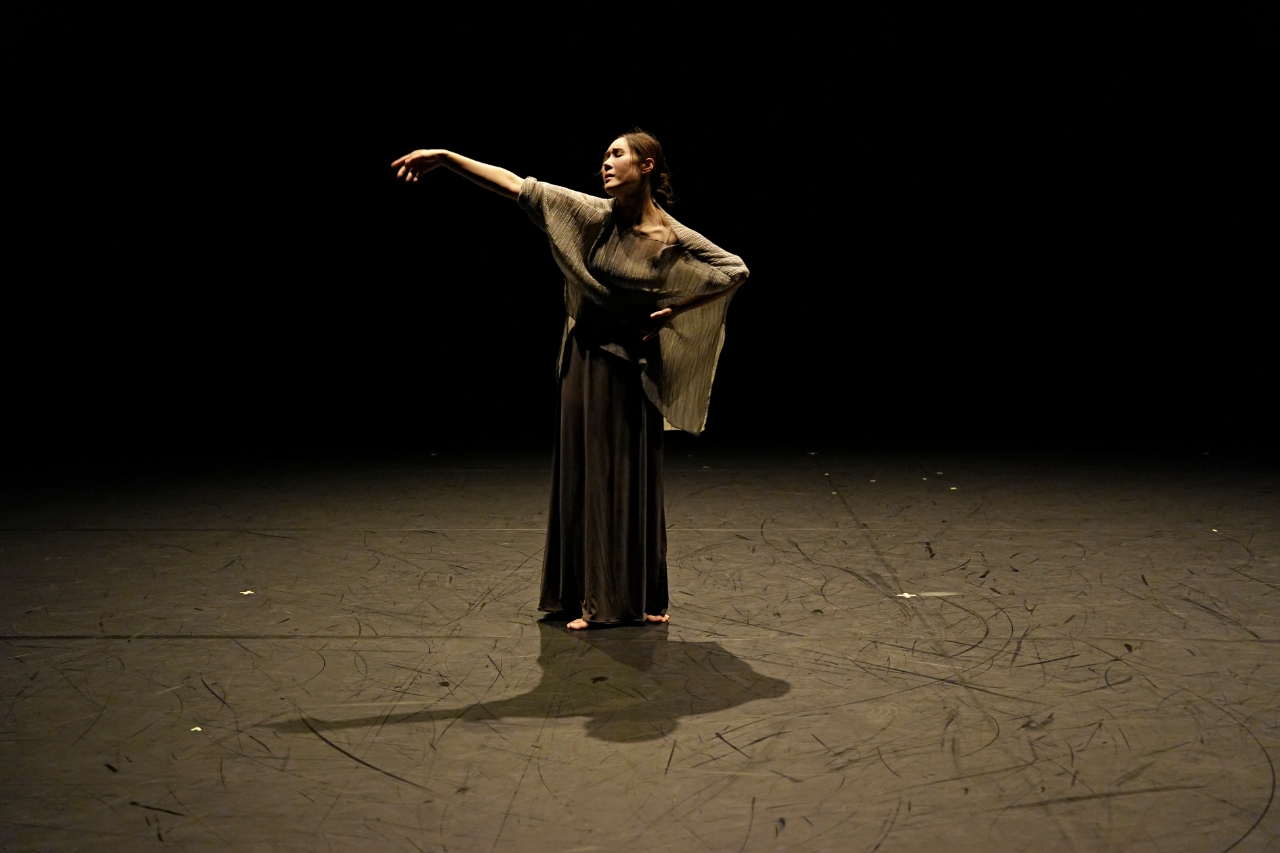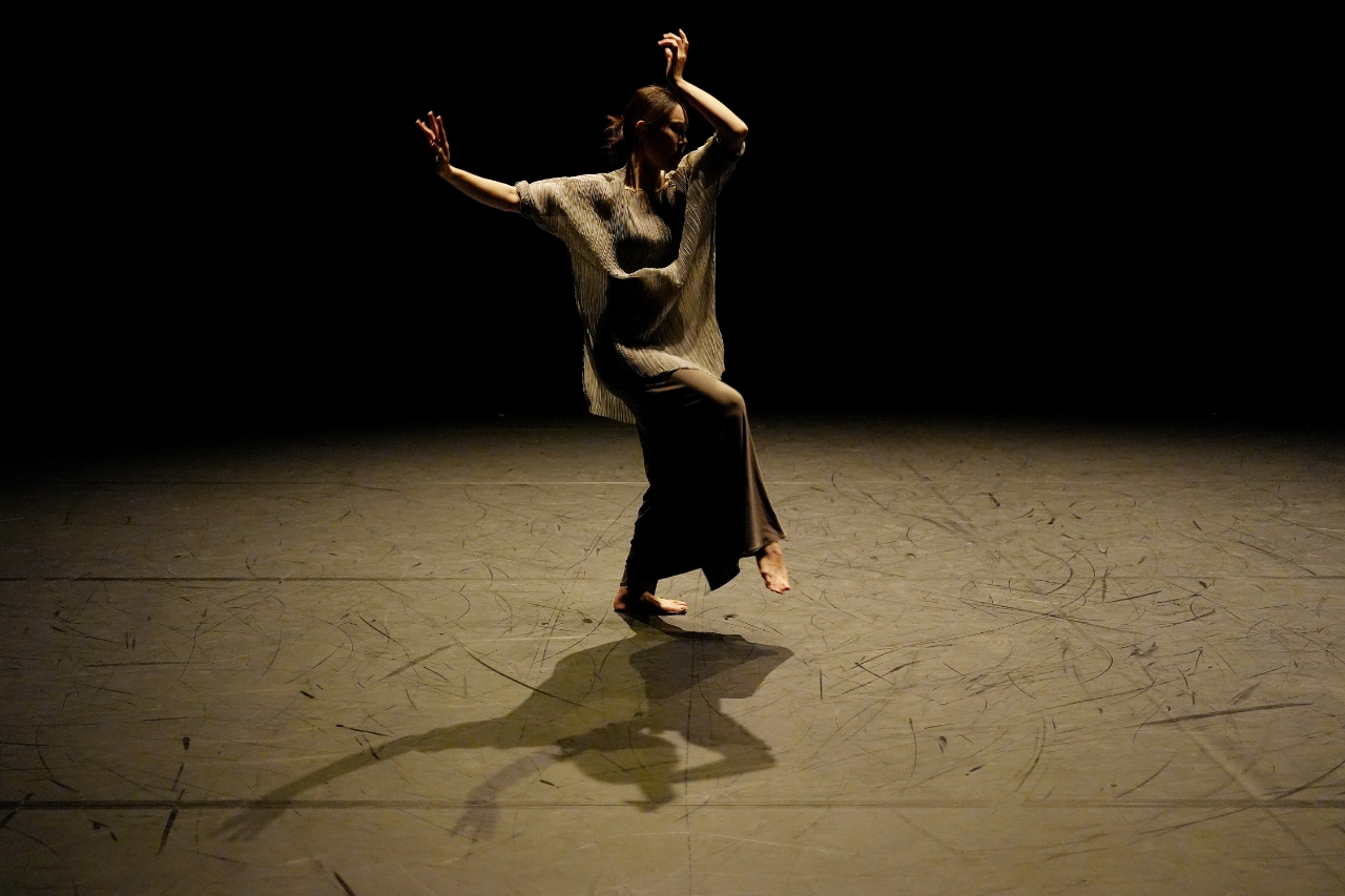 이미지 확대보기12월 2일(화) 오후 여덟 시 서울문화예술교육센터(은평)에서 김진아(천안시립무용단 상임단원) 안무의 '물의 끝'이 공연되었다. 높고, 허리 너른 공간에는 집중만이 필요했다. 잿빛 하늘 느낌의 스커트를 착장한 여인(김진아)은 ‘와호장룡’의 지성을 감싸며 초월자의 모습으로 자연에 마음을 이입하면서 자연을 설명하지 않고 자연에 머무는 시선을 공유한다. 시적 언어로 예감된 ‘물의 끝’의 정적과 여백은, 무대에서 김진아의 움직임을 통해 구체적 감각으로 전환된다.
