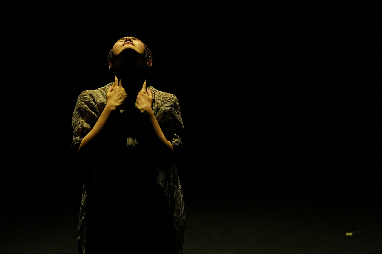 이미지 확대보기나레이션의 세 구절(‘간다’. ‘못간다’. ‘얼마나 울었던가’)은 언어적 설명이 아니라 움직임의 최소 단위로 환원된 시간 표식에 가깝다. ‘간다’와 ‘못간다’는 상반된 의미를 지닌 문장이지만, 흐름이 발생하고 중단되는 상태를 분절한다. ‘얼마나 울었던가’는 감정 서술보다 지나간 시간의 밀도를 호출하는 잔향으로서 신체의 움직임을 대신해 무대 위에 보이지 않는 파동을 남긴다. 언어는 춤을 설명하는 보조물이 아니라, 침묵과 정지 사이를 잇는 비가시적 안무가 된다.