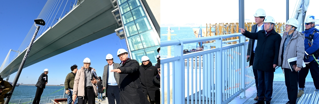 1일 유정복 인천시장이  제3연륙교 개통 앞두고 안전점검을 하고 있다. 사진=인천경제청이미지 확대보기