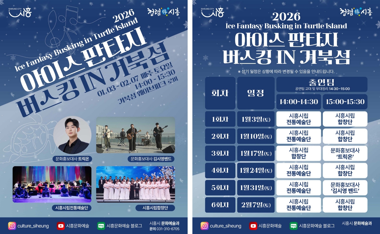 이번 공연은 별도의 사전 신청 없이 누구나 무료로 관람할 수 있으며, 세부 일정과 출연진 정보는 시흥시 공식 누리집과 누리소통망(SNS)을 통해 확인할 수 있다.