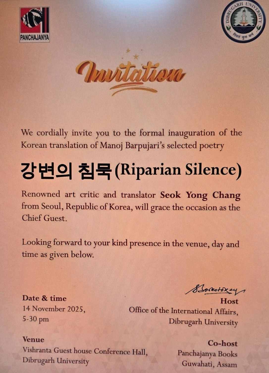 [나의 신작 연대기(71)] 마노지 바르푸자리(Manoj Barpjari, 시인, 예술평론가)의 시집을 번역하고 탐구하다