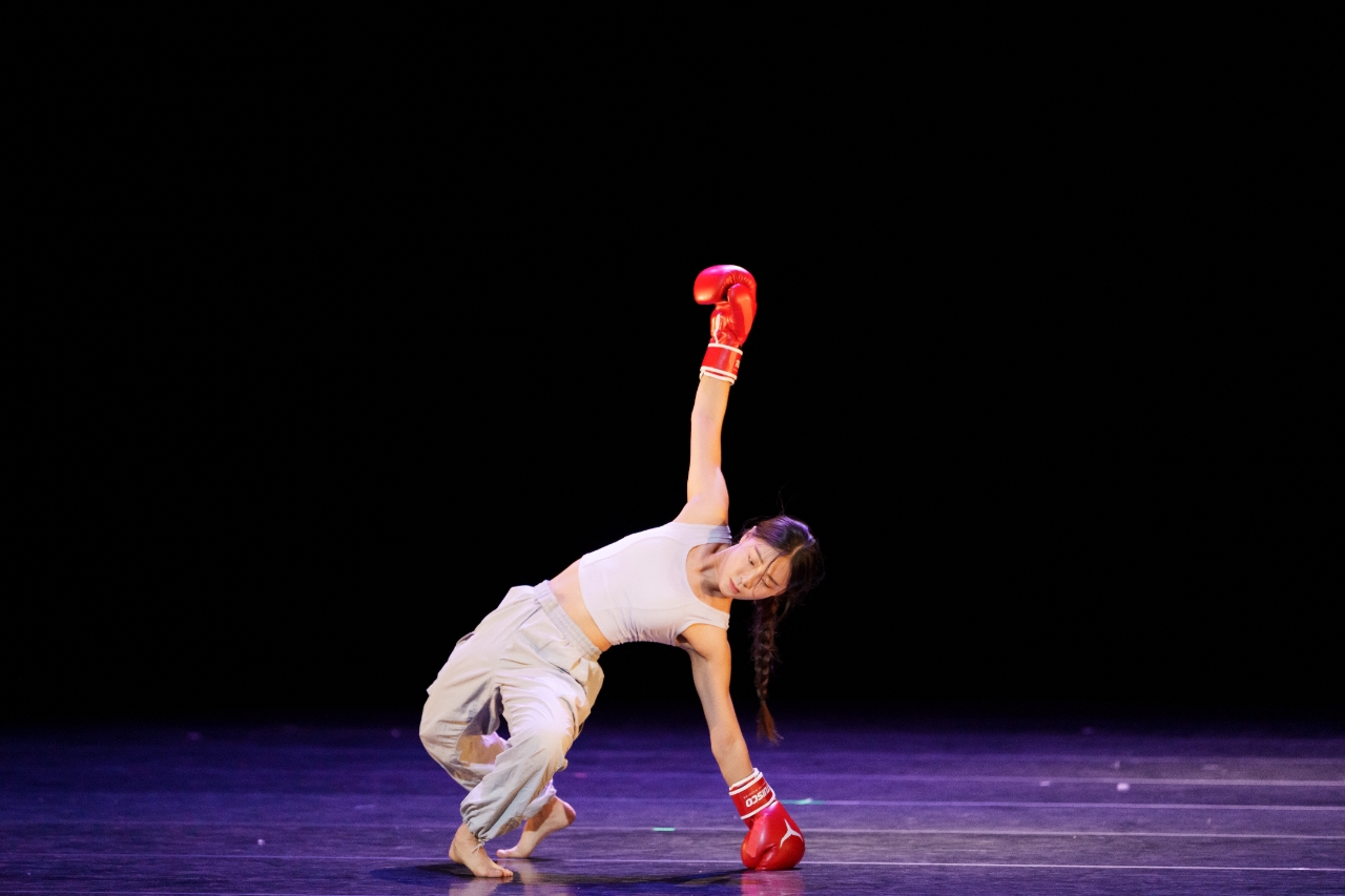 '춤을 그리다' : 1. '라운드'(조하나) : 라운드는 글러브를 통해 보호와 규율, 강화와 감각 차단이라는 신체의 이중성을 드러낸다. 맨손의 유연함을 잃은 몸은 날카로운 선으로 변형되며, 공격성과 방어성이 중첩된 채 생존을 강요받는 동시대의 조건을 시각화한다. ‘무거운 파도’는 반복적으로 축적되는 정동의 압력으로서 신체를 흔들고 지연시키며 균형을 붕괴시킨다. 연속되는 밀어냄과 흔들림, 큐자리의 비완결성은 승패 없는 일상의 저항과 멈출 수 없는 삶의 리듬을 몸의 윤리로 제시한다. 라운드는 극복의 서사를 거부한 채, 지속되는 긴장의 풍경을 현대무용 언어로 응축한다.