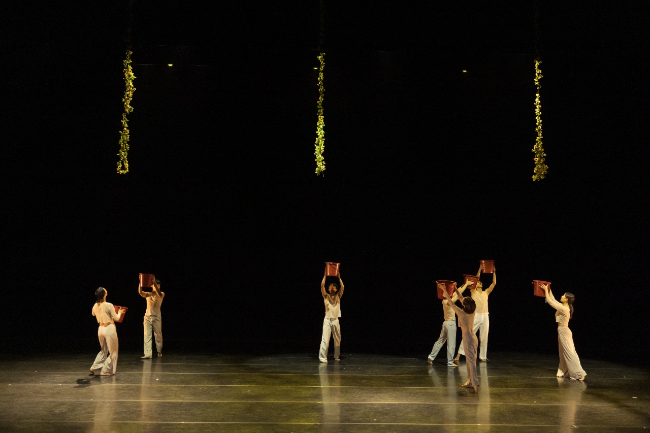 '존재의 욕망' : 욕망을 사회에 길들여진 신체의 기본 설정으로 제시한다. 직선적 전진과 과도한 긴장, 축적과 점유로 향하는 반복 동작은 물질적 가치 추구가 일상의 제스처로 내면화되었음을 드러낸다. 신체는 주변을 고려하지 않고 공간을 침범하며 점유하여 움직이고, 인간이 자연의 적이 되었음을 선언 없이 체화한다. 자연과의 관계가 소진될수록 동작은 각지게 분절되며, 반복될수록 욕망은 비대해지다 끝내 공허로 남는다. 병렬적으로 나열된 군무 속 고립된 몸들은 함께 움직이되 함께 존재하지 못한 채, 파괴 이후 다시 관계를 선택할 수 있는 가능성을 질문으로 남긴다.