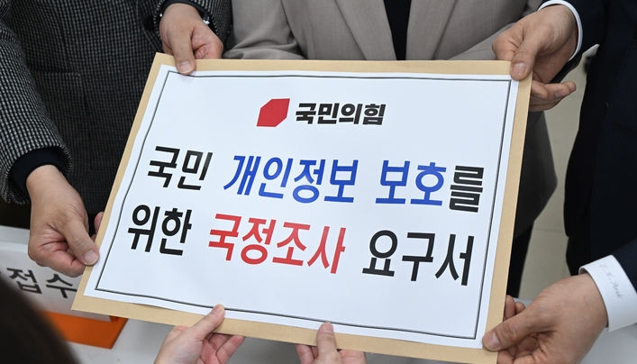 한편 국민의힘은 이날 오전 국회 의안과에 의원 107명이 요구자로 참여한 '개인정보와 정부 주요 전산망 해킹 및 정보 유출 사고와 개인정보의 해외이전에 대한 실태 조사 및 유출 사고 재발방지대책 마련을 위한 국정조사 요구서'를 제출했다.