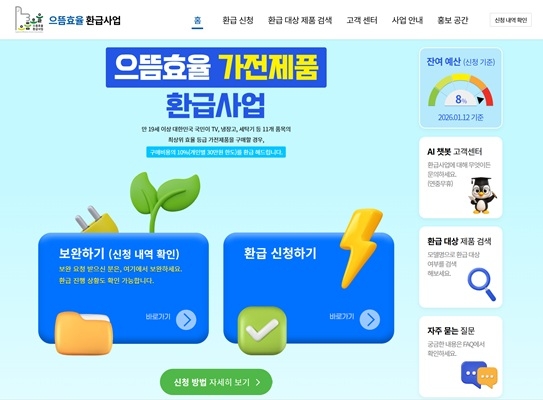 환급 신청 절차, 대상 제품 확인 및 잔여 예산 등 자세한 사항은 으뜸효율 홈페이지 또는 고객센터를 통해 확인이 가능하다.