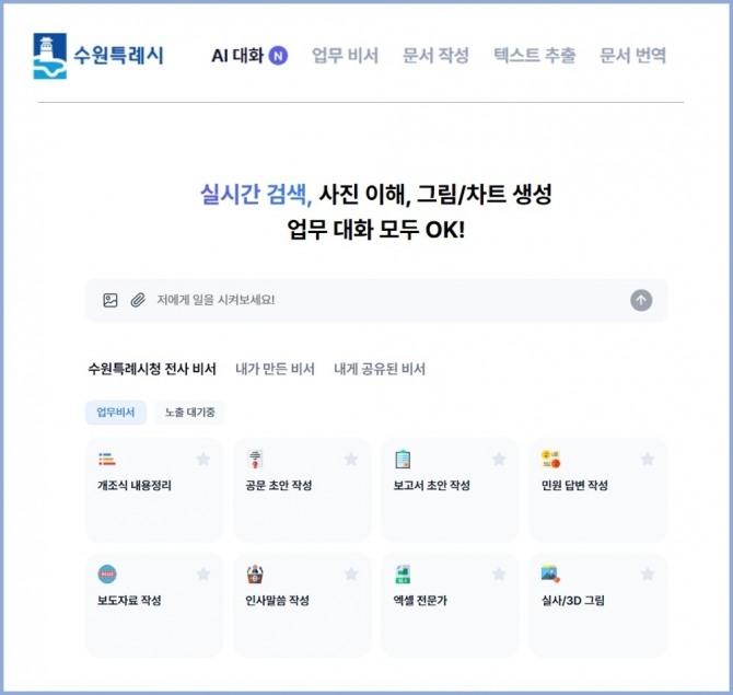 이번 서비스는 문서 작성, 민원 답변 초안 작성, 번역 등 문서 기반 행정 업무를 지원하며, 보도자료, 블로그 등 홍보 콘텐츠 제작도 지원한다.
