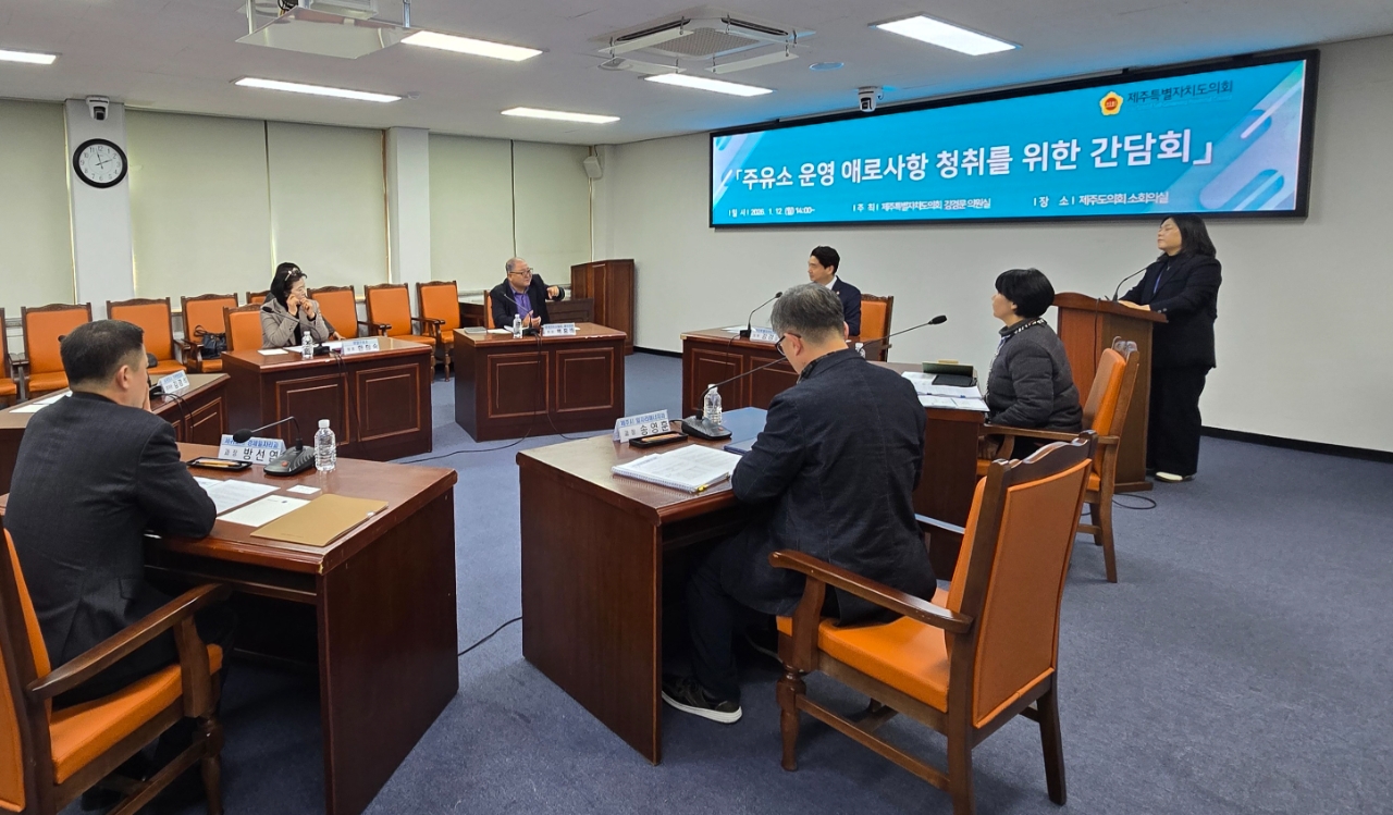 제주특별자치도의회 강경문 의원(국민의힘)은 지난 12일 도의회 소회의실에서 '주유소 운영 애로사항 청취 간담회'를 개최하고 주유소 업계의 현장 의견을 토대로 한 지원 방안을 논의했다.