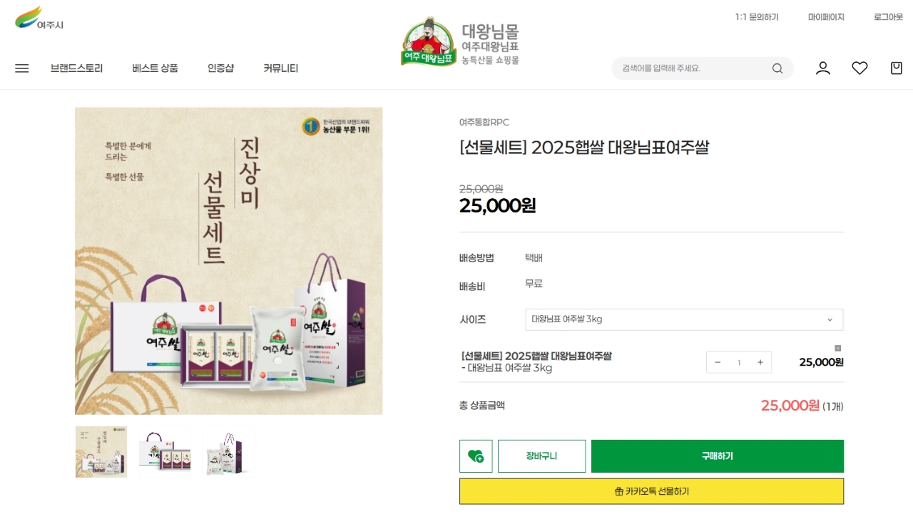 이번 선물하기 기능 도입으로 소비자들은 별도의 주소 입력이나 복잡한 절차 없이도 카카오톡을 통해 여주쌀을 간편하게 전달할 수 있게 됐다. 특히 받는 사람이 직접 배송지를 입력하는 방식이 적용돼 선물 과정의 번거로움을 크게 줄였다.