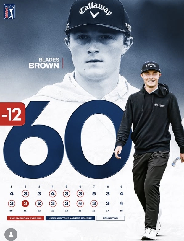 브라운은 전날 공동 51위에서 세계랭킹 1위 스코티 셰플러(미국)와 함께 공동 선두에 올랐다. 10번홀부터 출발한 브라운은 마지막 9번홀(파4·453야드)에서 세컨드 샷을 핀에 붙이고도 볼이 컵 오른쪽으로 살짝 흘러 버디를 놓쳐 아쉬움이 더 컸다.