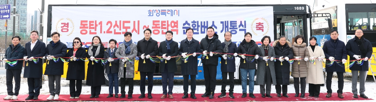 이미지 확대보기이날 동탄패밀리풀에서 열린 개통식은 정명근 화성특례시장, 배정수 화성특례시의회 의장, 전용기 국회의원, 도·시의원, 시민 등 30여 명이 참석해 동탄역 순환버스 개통을 축하했다.