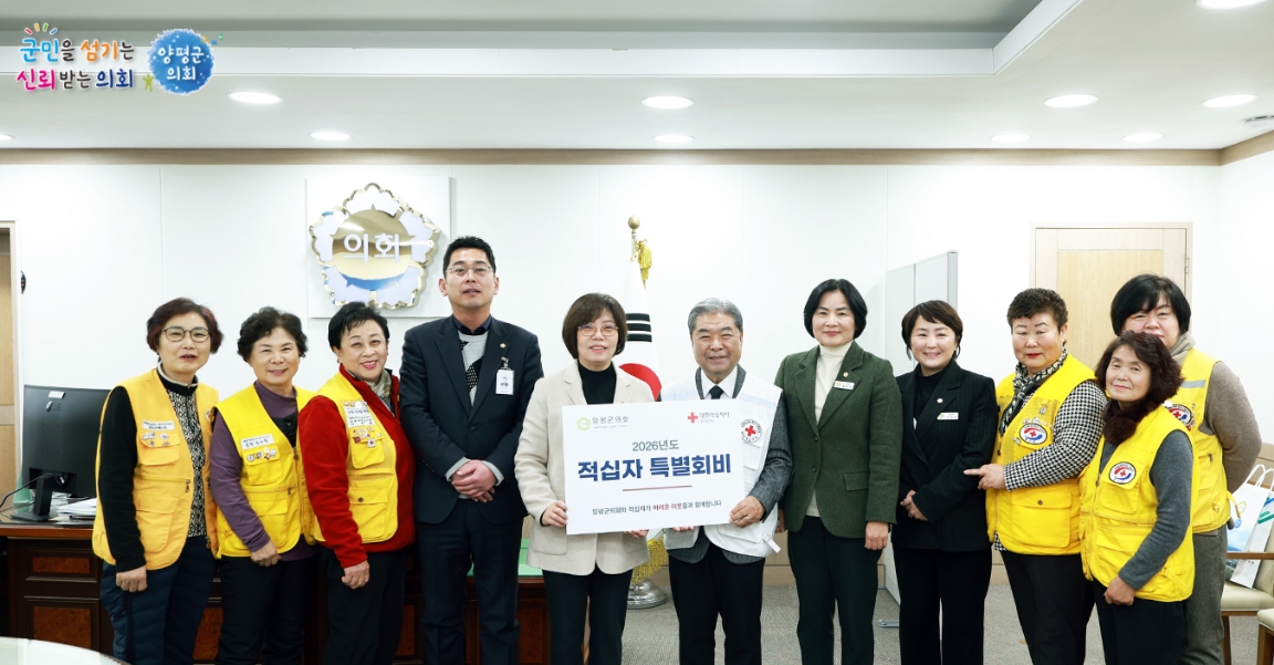 한편, 양평군의회는 매년 적십자 특별회비 납부로 나눔 정신을 실천하고 있으며, 지역 내 다양한 사회복지 현장을 방문해 애로사항을 청취하는 등 현장 중심의 의정활동을 이어가고 있다.