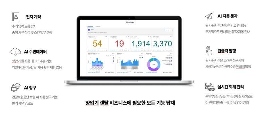 양압기 대여 서비스는 환자의 순응도 관리와 월 사용 시간 관리, 처방 기간 등 충족해야 할 보험 조건이 매우 복잡해 실무자의 실수가 잦은 영역이다. 양압기 대여 업체가 관리하는 고객 수가 많아질수록 적은 인력으로 운영 효율을 높이는 것이 업체의 생존 핵심 전략으로 떠오르고 있다.