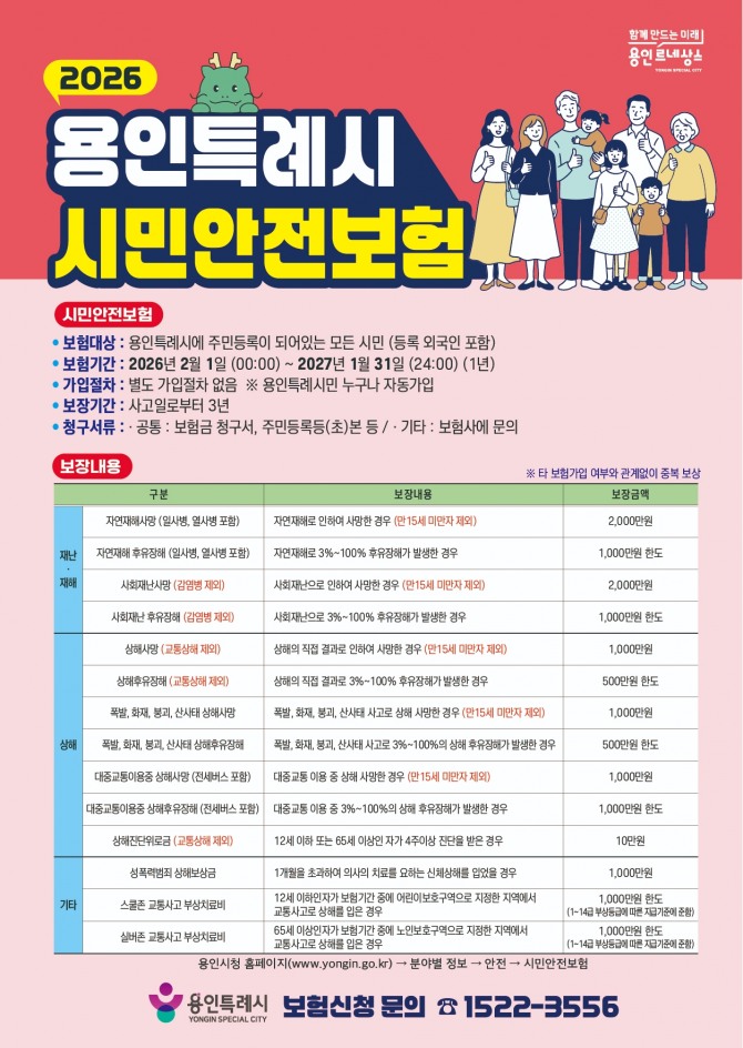 자세한 내용은 용인특례시 홈페이지 ‘시민안전보험’에서 확인할 수 있다.