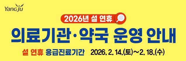 설날 연휴 기간 운영 의료기관 및 약국 정보는 △양주시 보건소 △119구급상황관리센터 △보건복지부 콜센터 △응급의료포털제공 누리집(E-Gen) △응급 의료 정보제공 앱 등을 통해 손쉽게 확인할 수 있다.