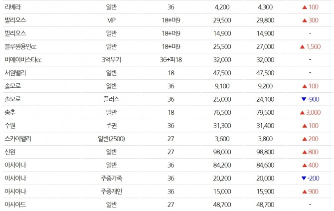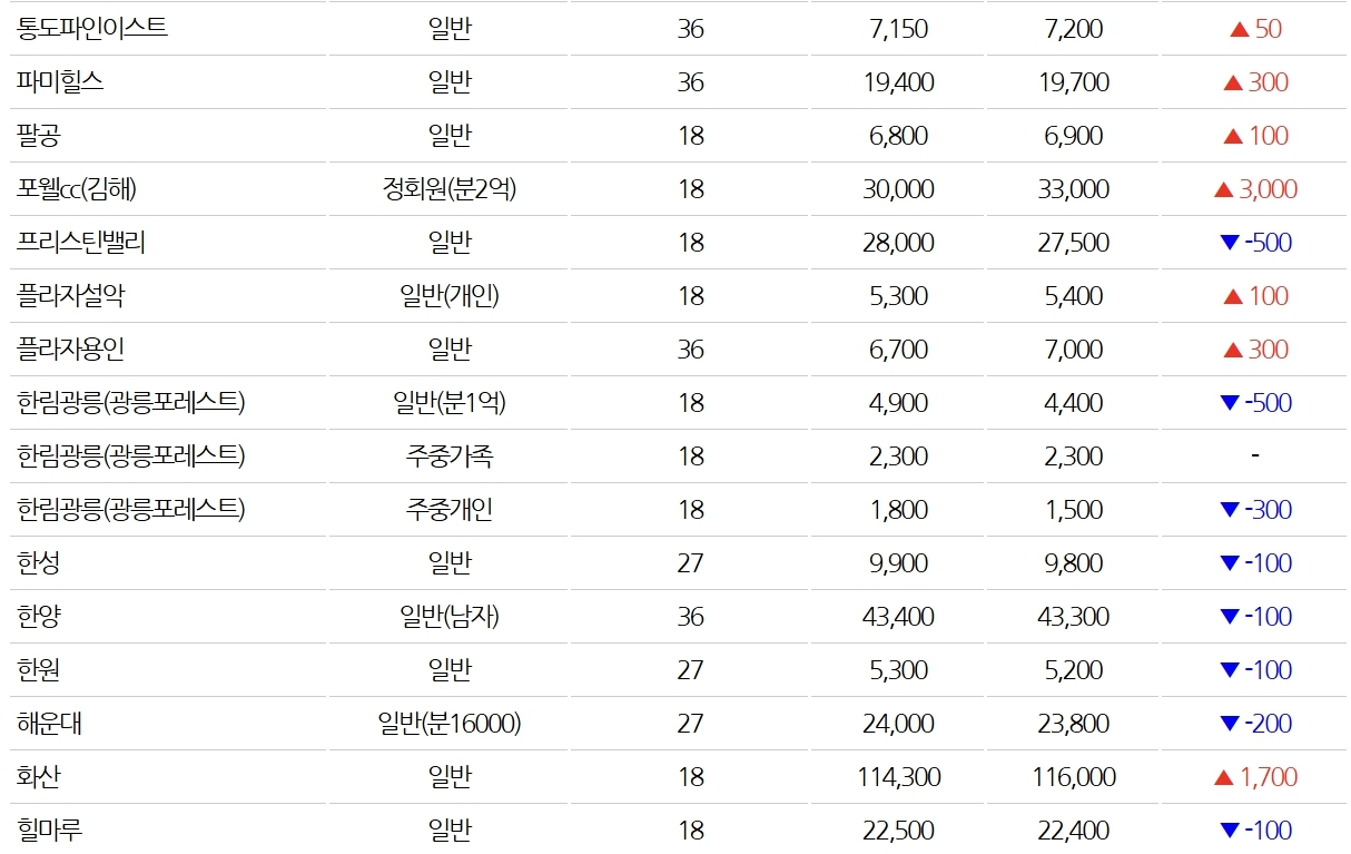 가장 오랜 역사를 지닌 한양CC는 4억330만원에 주문이 이어지고 있다.